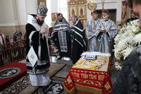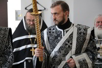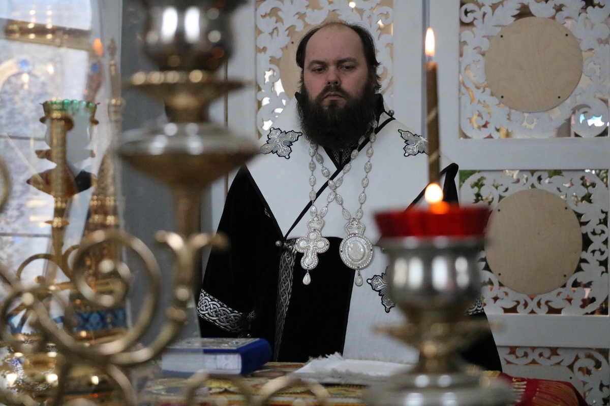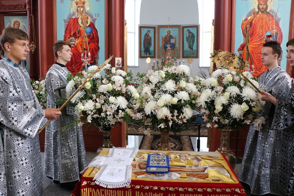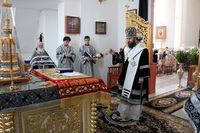 Его Преосвященству сослужили: митрофорный протоиерей Валентин Никонов, ключарь Свято-Воскресенского собора протоиерей Андрей Кунавин, клирики собора иерей Георгий Дворовой, иерей Сергий Чудайкин, иерей Андрей Андреев.