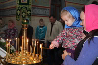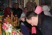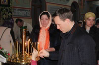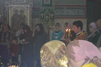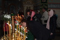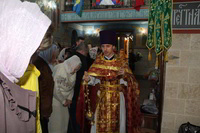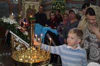 Пасха считается самым главным праздником в православной вере. В этот день храм украшен цветами, зажжены свечи и лампы, в каждом углу храма. Так же священники сменяют черную одежду на светлую. Храм был переполнен прихожанами, которые пришли помолиться на службе. По традиции православного народа в Пасхальную ночь прихожане принесли с собой в храм твороженную Пасху, пасхальные яйца, куличи и другие угощения, чтобы осветить после завершения Божественной Литургии. В процессе пасхальной службы иерей Евгений с прихожанами совершили крестный ход, была осуществлена пасхальная заутреня, и затем прозвучала Божественная Литургия.