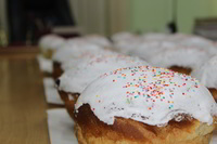 Без внимания не остались и нуждающиеся! По традиции, сложившейся на приходе при воинской части, после освящения, народ разделял свою радость в виде куличей, яиц и других сладостей, жертвуя в общую пасхальную корзину.