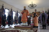 Его Преосвященству сослужили: протоиерей Валентин Никонов, благочинный Беловодского благочиния протоиерей Алексий Махров, протоиерей Андрей Борисенко, настоятель храма Архистратига Божия Михаила иерей Александр Пелин, благочинный Свято-Казанского мужского Архиерейского подворья иеромонах Макарий (Еременко), иеромонах Ираклий (Коростелев), иеромонах Серафим (Шаталин), иерей Георгий Дворовой, настоятель храма Пресвятой Богородицы иерей Виктор Гончарук.