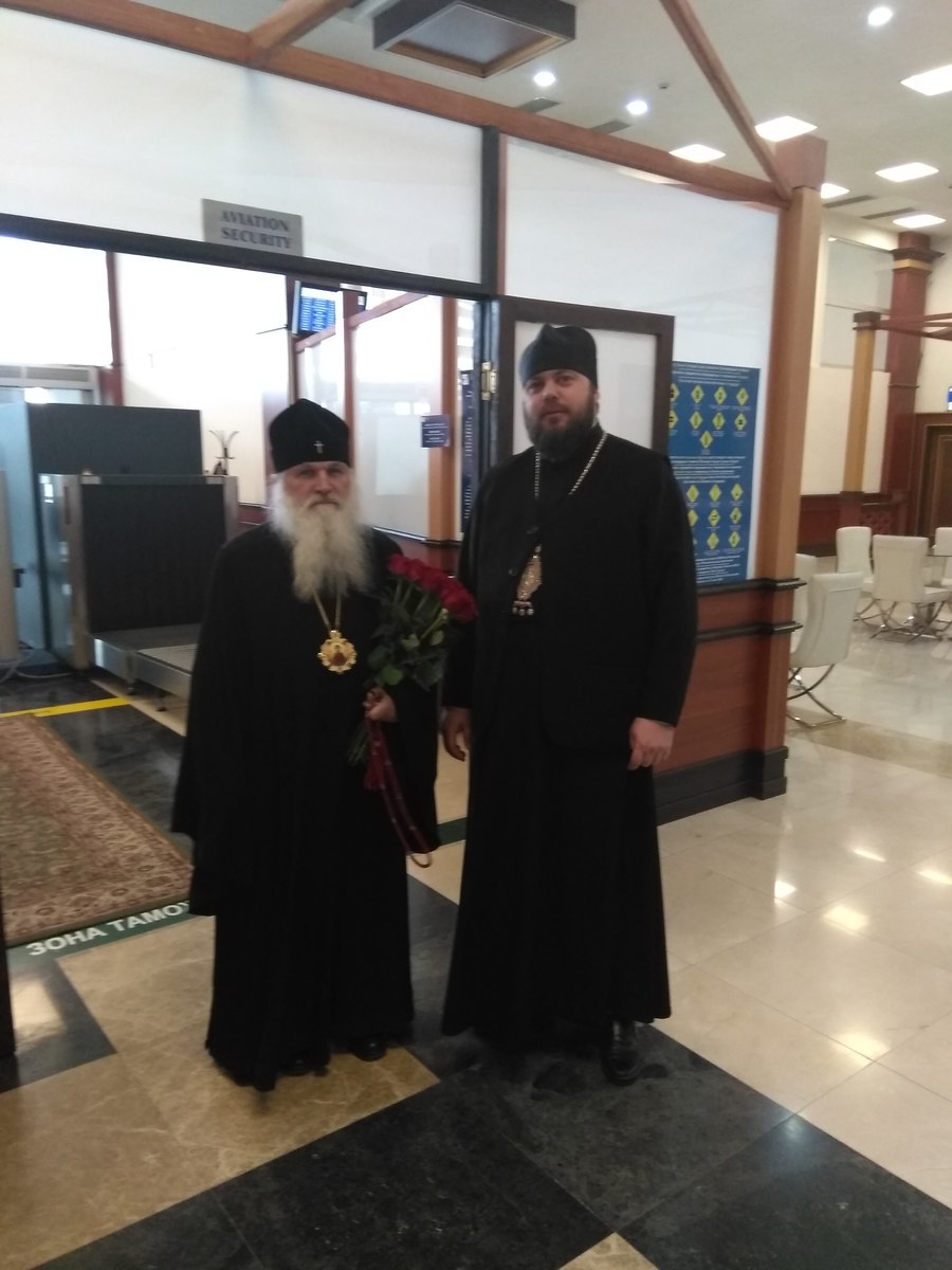 В аэропорту митрополита Викентия встретил епископ Бишкекский и Кыргызстанский Даниил.