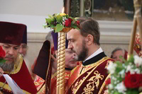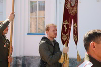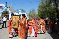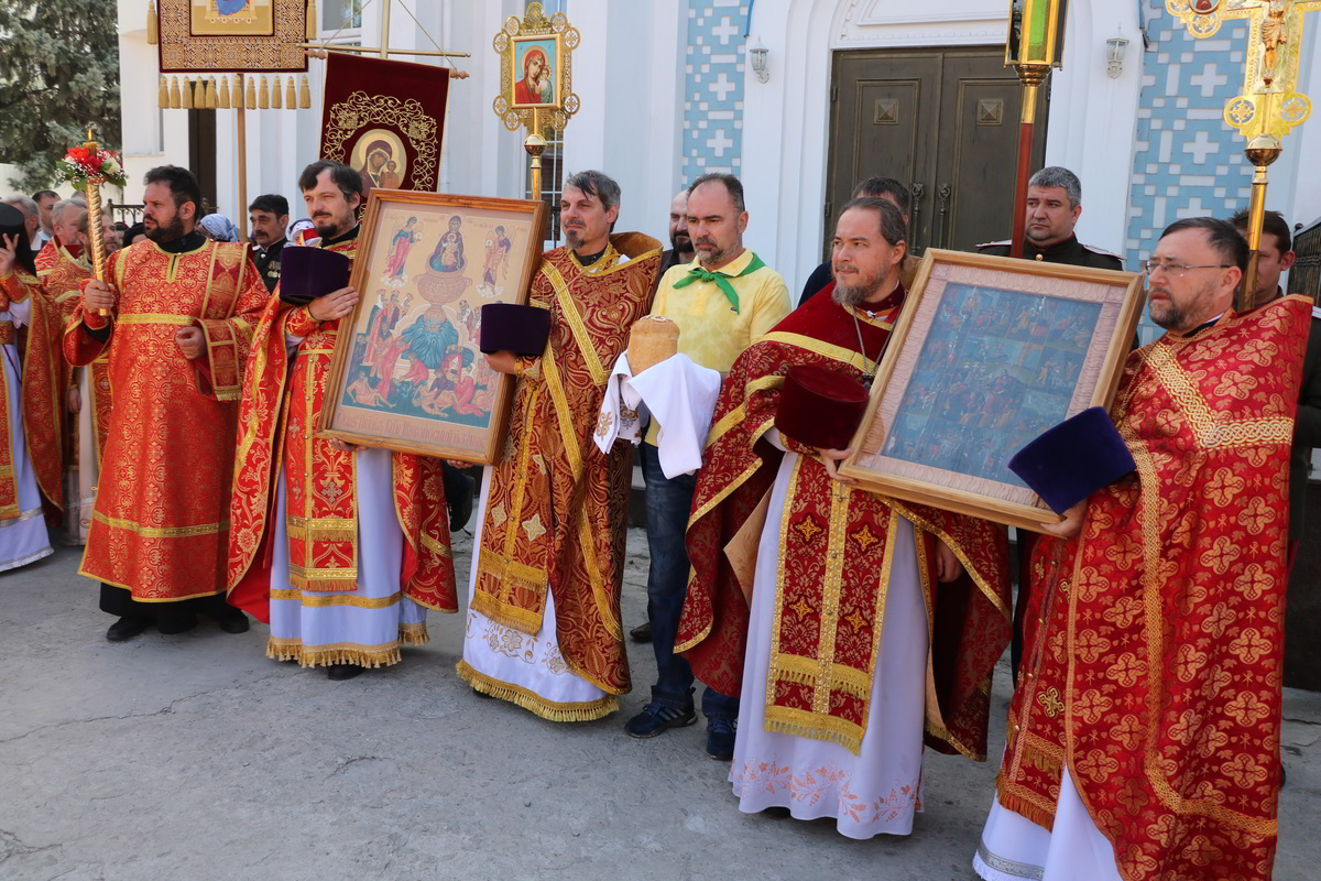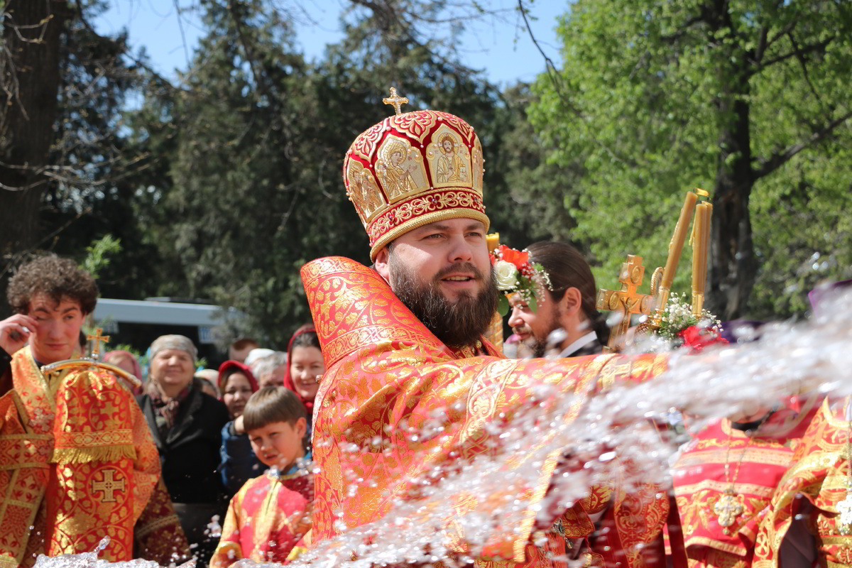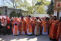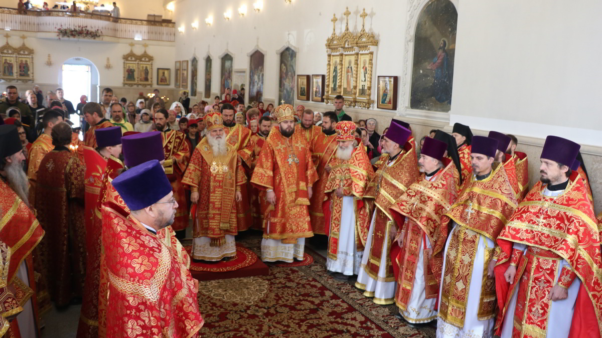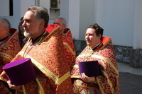 За богослужением были совершены водосвятие и крестный ход вокруг собора.