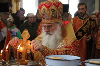 Его Высокопреосвященству сослужил епископ Бишкекский и Кыргызстанский Даниил и духовенство всех благочиний епархии.