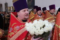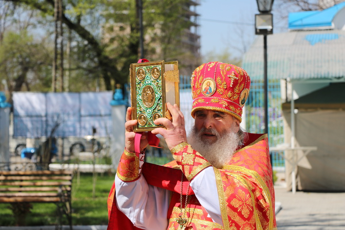 «Ваше Высокопреосвященство, дорогой возлюбленный о Христе, дорогой наш владыка, Глава Среднеазиатского митрополичьего округа. Сегодня Вы свидетельствуете о своей любви к нашим православным кыргызстанцам, пребывая в эти светлые дни с нами в молитве и богослужении. Сегодня, владыка Вы сказали о древних святых, которые ковали праведную жизнь в делах спасения своей души. Но я хотел бы сказать, что и ныне куются дела спасения. От лица нашего духовенства и прихожан нашей епархии, я хотел бы поблагодарить Вас за то, что наши кыргызстанцы вместе с Вами летают в Иерусалим за Благодатным огнем. Это ваш великий труд и заслуга. Хочу подчеркнуть, что, несмотря на огромное скопление народа в эти дни, Вам удалось провести паломников по многим святым местам, чтобы они могли коснуться великой благодати святынь и привезти сюда Благодатный огонь. Мы благодарим Вас и молимся постоянно за Ваше здоровье и Ваше архипастырское служение. Вы для нас Владыка, как солнышко, и всегда куете это спасение своим примером. Мы, взирая на ваши труды, испытываем радость и благодарность, берем пример, как мы должны служить и как мы должны стремиться к делу спасения».