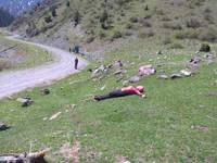 Мы побывали как в сказке «12 месяцев» в жарком апреле и прохладном марте. По дороге в ущелье нас радовали цветущие яблони, солнечные одуванчики. В ущелье окунулись в прохладу водопада. Когда мы поднялись выше на 20 км нас удивило наличие снега и целые поляны подснежников.