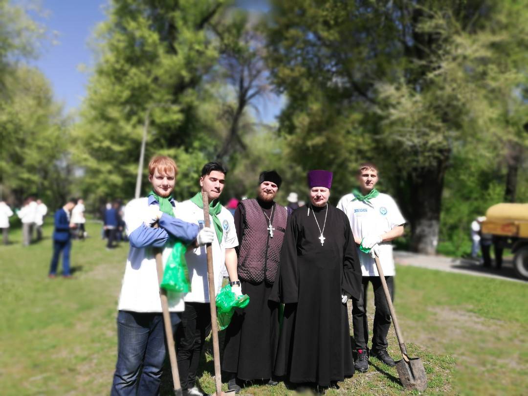 Бишкекскую и Кыргызстанскую епархию представляли секретарь епархии протоиерей Алексей Сыромятников, руководитель отдела по делам молодежи иерей Илья Меляков и волонтеры православных молодежных клубов Бишкека. В своем слове секретарь епархии передал приветствие управляющего Бишкекской и Кыргызстанской епархии Преосвященнейшего Даниила, епископа Бишкекского и Кыргызстанского и выразил уверенность, что такие мероприятия не только улучшают экологическую обстановку и климат в нашем горячо любимом городе, но и укрепляют межконфессиональное и межэтническое сотрудничество и согласие. Отец Алексей провел параллель посадки деревьев с Эдемским садом, который был не только местом благополучия и уюта, но и добрых человеческих отношений между людьми.