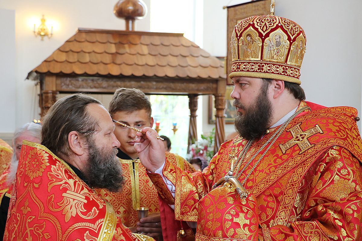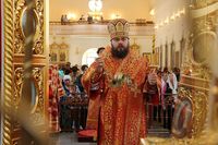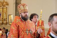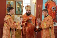 Его Преосвященству сослужили: протоиерей Валентин Никонов протоиерей Андрей Кунавин, иерей Георгий Дворовой, иерей Сергий Чудайкин, иерей Олег Белотуркин, иерей Андрей Андреев.