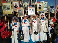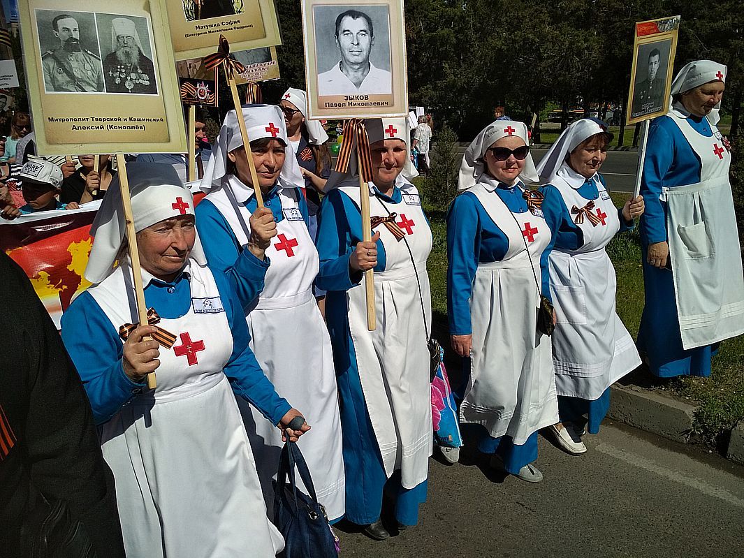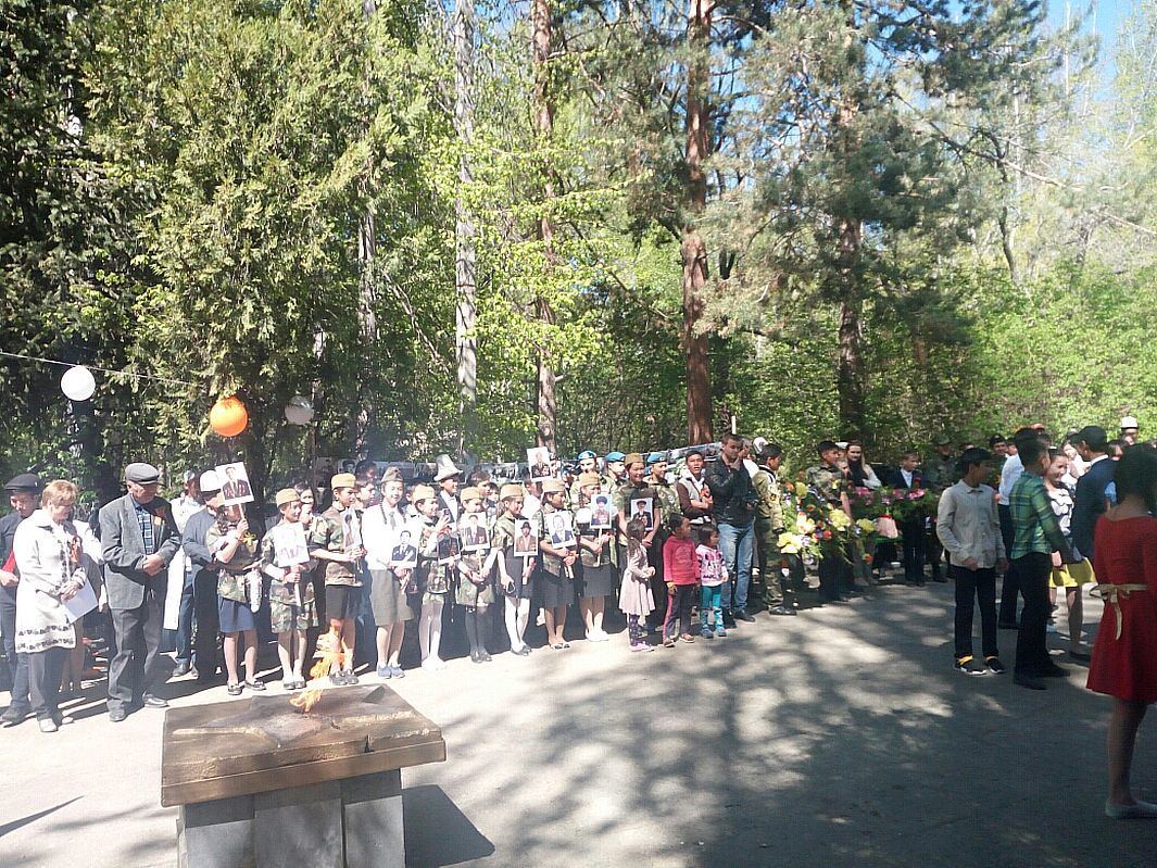 Каждый из участников шествия держал в руке фотографию своего родственника и прошел в колонне «Бессмертного полка», в память о подвиге воинов Великой Отечественной войны.