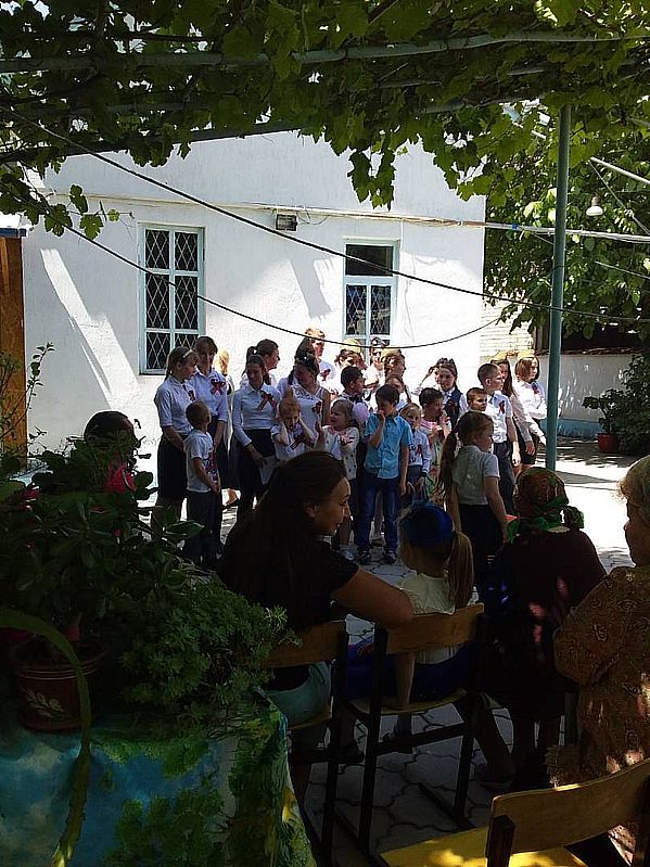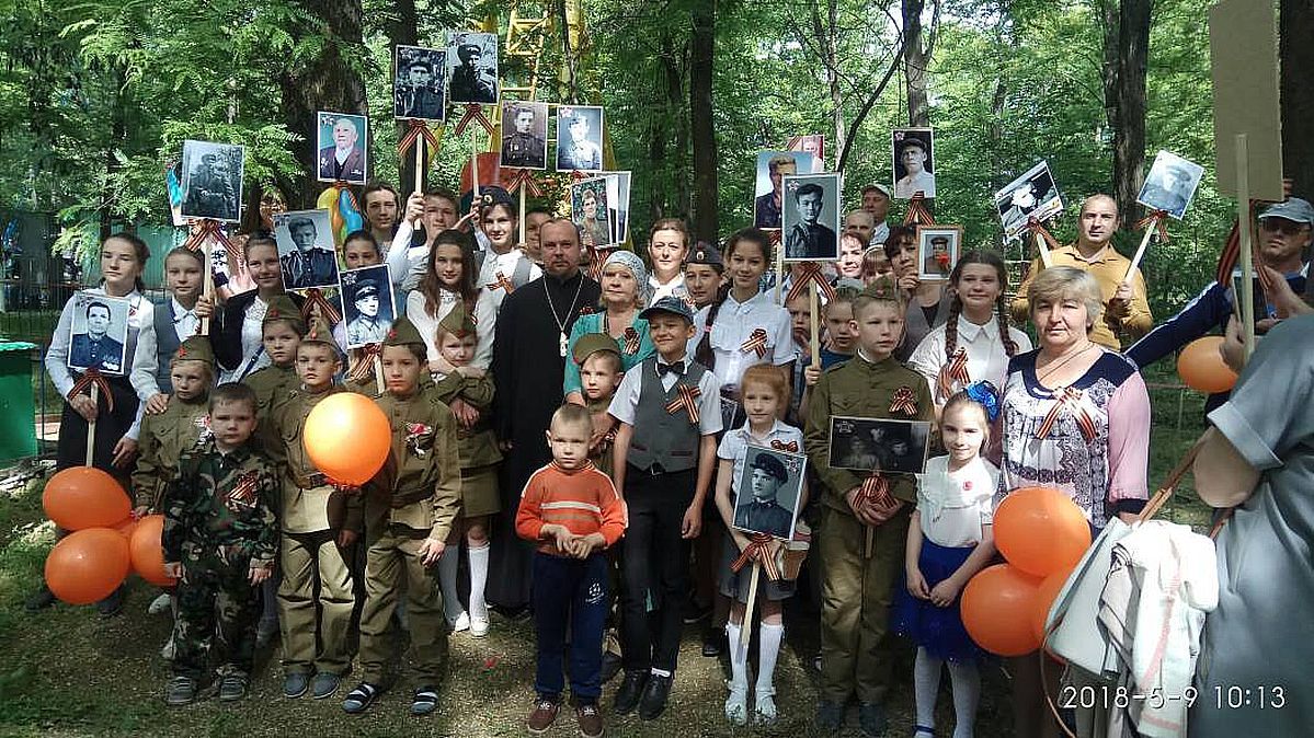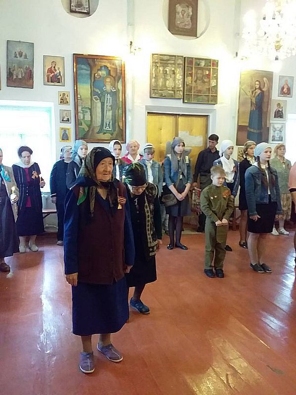 Ученики Воскресной школы приняли участие в городском концерте, а после проведения мероприятия все вместе отправились в храм и отслужили благодарственный молебен. После окончания молебна ребята снова порадовали прихожан концертом, где звучали стихи и песни военных лет.