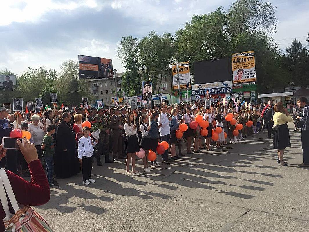 По сообщению из Джалал-Абада, 9 мая 2018 года в Храме Успения Божией Матери прошла панихида по воинам, погибшим во время Великой Отечественной Войны.