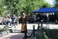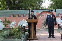 Участники митинга почтили память погибших на фронтах Великой Отечественной войны и ушедших из жизни ветеранов минутой молчания. Помощник командира по работе с верующими военнослужащими священник Евгений Циклаури провел панихиду обо всех погибших воинах.