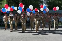 К монументу были возложены венки и цветы. В честь праздника личный состав авиабазы проследовал по центральной аллее гарнизона торжественным маршем.