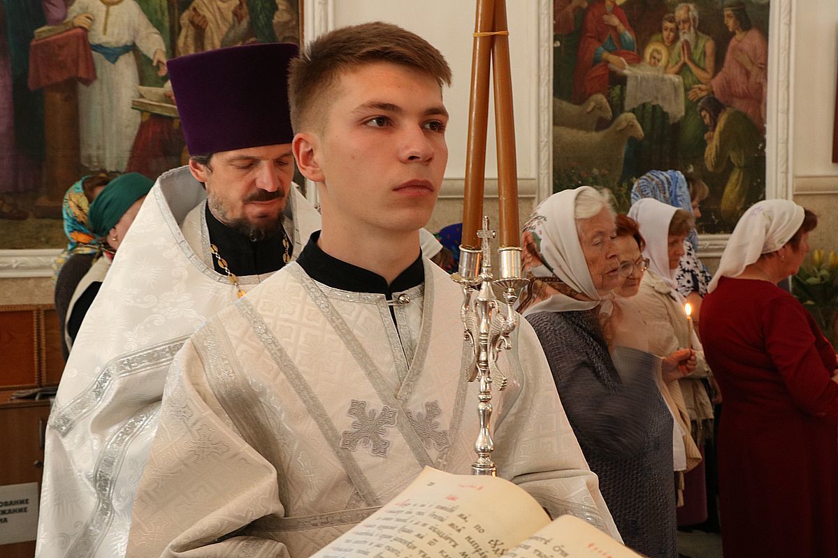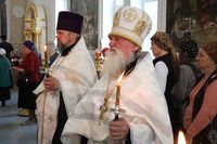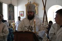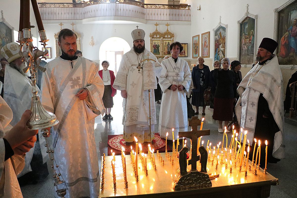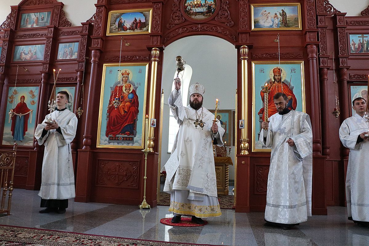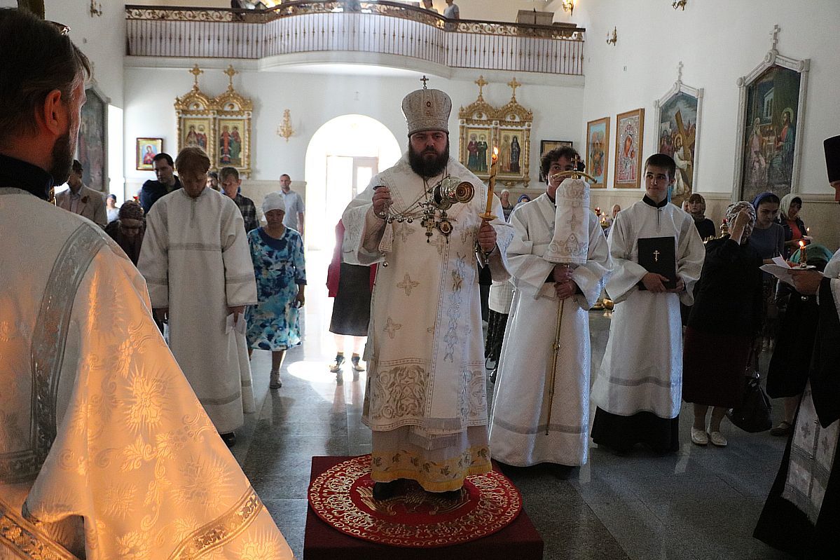 Его Преосвященству сослужили: протоиерей Валентин Никонов, протоиерей Андрей Кунавин, иерей Георгий Дворовой.