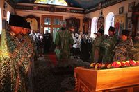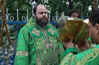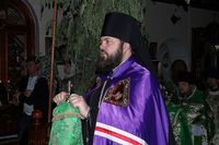 Его Преосвященству сослужили: протоиерей Валентин Никонов, благочинный Беловодского округа протоиерей Алексей Махров, протоиерей Андрей Борисенко, протоиерей Артемий Долотов, протоиерей Александр Мезенцев, иерей Александр Пелин, иерей Андрей Бутаков, иерей Виктор Гончарук, иерей Георгий Дворовой.