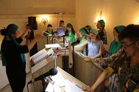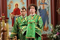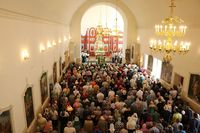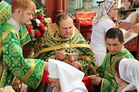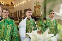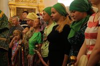 Во время литургии богослужебные песнопения исполняли четыре церковных хора: архиерейский хор Свято-Воскресенского кафедрального собора, хор Владимирского собора, сборный хор от нескольких приходов епархии и квартет пономарей – воспитанников благочинного Ошского округа протоиерея Виктора Реймгена. Его Преосвященство поблагодарил всех исполнителей и пожелал им вечного спасения и благодатной помощи Божией в несении послушания.