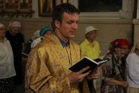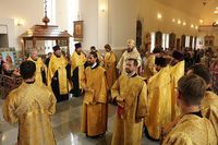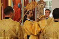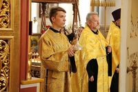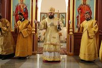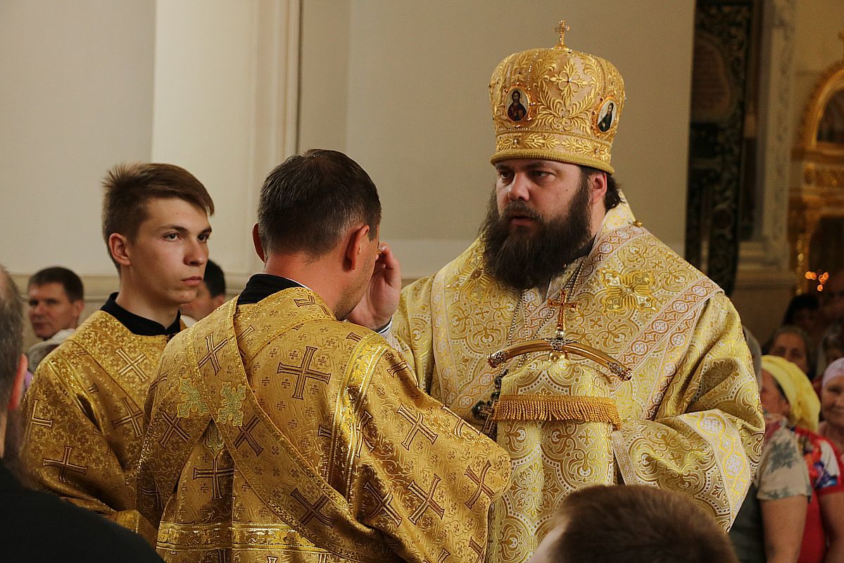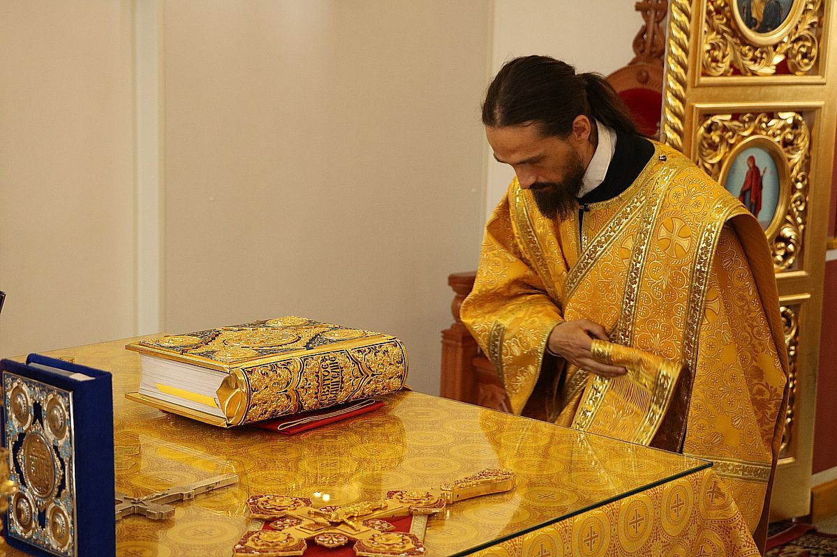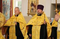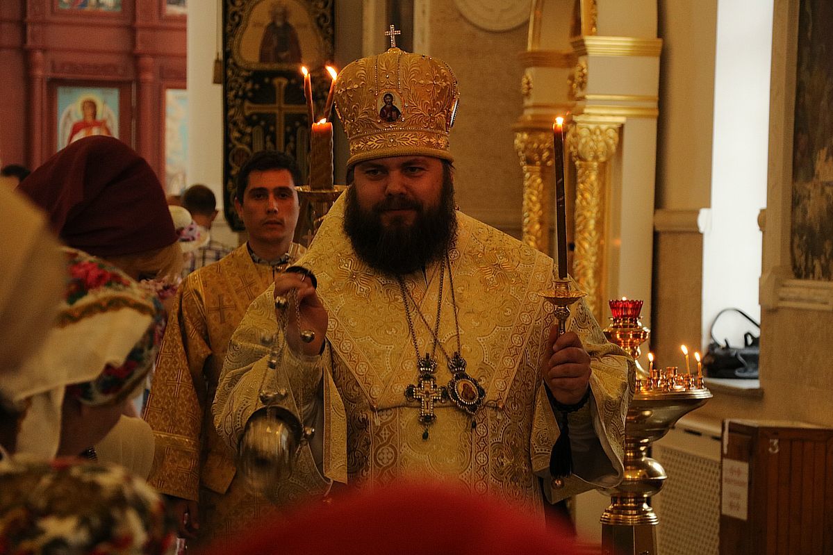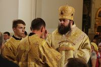 Его Преосвященству сослужили: протоиерей Андрей Кунавин, иерей Георгий Дворовой, иерей Сергий Чудайкин, иерей Олег Белотуркин, иерей Андрей Андреев.