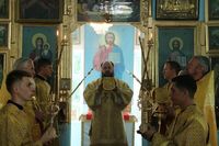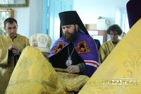 Его Преосвященству сослужили: настоятель храма протоиерей Виктор Журавлев, протоиерей Валентин Никонов, иерей Георгий Дворовой.