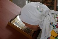 За богослужением епископ Даниил помазывал освященным елеем.