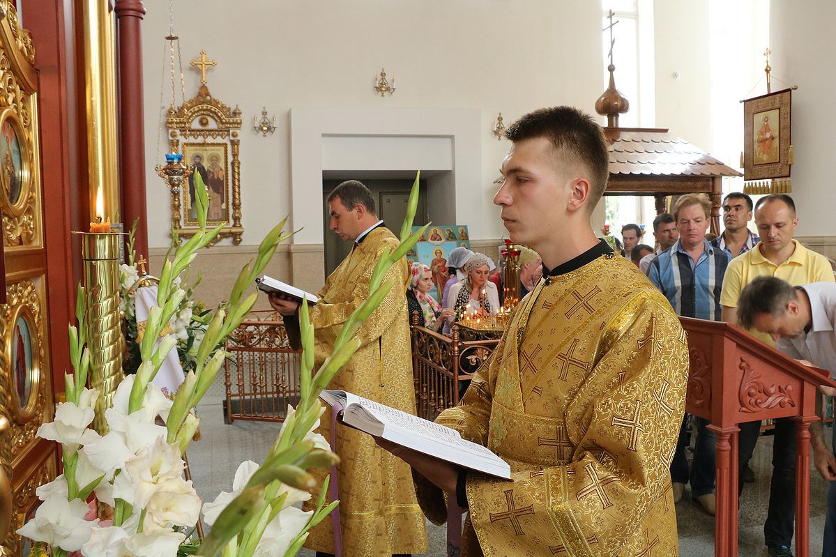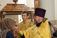 Его Преосвященству сослужили: протоиерей Валентин Никонов, протоиерей Андрей Кунавин, иерей Андрей Кунавин, иерей Георгий Дворовой, иерей Олег Белотуркин, иерей Андрей Андеев.