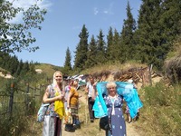 Побывали в Покровско-Всехсвятском приходе, на территории которого строится шестипрестольный храм. Главный - в честь Собора Пресвятой Богородицы, остальные пять - в честь иконы Божией матери «Феодоровская», «Почаевская», «Достойно есть», «Неопалимая Купина» и «Скоропослушница». Послушница прихода провела экскурсию по строящемуся храму. Паломники поднялись на колокольню с высоты которой открылся замечательный вид на город. Также приложились к иконе Божией Матери «Панагия Сумела» написанной на Афоне. Радушный прием закончился трапезой. Далее группа посетила храм влкмч.«Параскевы Пятницы». Вблизи храма находится источник и поклонный крест, а также строящийся храм в честь св. Александра Невского. Во время Всенощного бдения группа была в храме «Рождества Христова».11 августа рано утром «семеро смелых» присоединились к паломникам из Алматы и отправились в «Серафимо-Феогностовскую Пустынь», чтобы почтить память преподобномучеников Серафима и Феогноста. С Божией помощью паломники побывали в святом месте и благополучно спустились. Также побывали на святом источнике «Живоносный» в селе Космос и переночевали в часовне, посвященной св. целителю Пантелеимону при храме Пресвятой Богородицы «Живоносный источник».