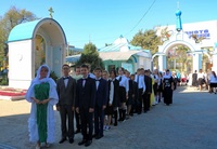 Приветственное слово к собравшимся от лица епископа Бишкекского и Кыргызстанского Даниила зачитал секретарь епархиального управления иерей Александр Пелин. В архиерейском послании к педагогам, родителям и ученикам епископ Даниил тепло поздравил всех присутствующих с Днём знаний и началом нового учебного года. «Учить и учиться - нелёгкая, но очень важная работа, как для педагогов, так и для школьников. Она требует вдумчивого и серьёзного отношения, терпения, внимания и уважения друг к другу, бережного отношения к учебному заведению. Иначе нельзя, ведь школа и класс - это вторая семья, как для учеников, так и для педагогов. Убеждён, что нашим детям по силам преодолеть все трудности, стать по-настоящему образованными людьми и в будущем внести достойный вклад в развитие нашего общества. Я желаю всем – учащим и учащимся – доброго здравия и бодрости духа, всещедрой помощи Божией и благословенных успехов, педагогам и родителям мудрости и терпения, а учащимся настойчивости и трудолюбия, отличных оценок и интересных открытий в наступающем учебном году!» - отметил Владыка Даниил в своём приветствии.