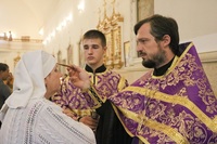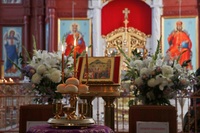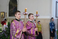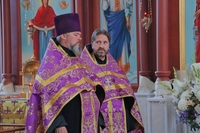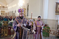 Его Преосвященству сослужили: протоиерей Валентин Никонов, протоиерей Андрей Кунавин, иерей Сергий Чудайкин, иерей Георгий Дворовой, иерей Олег Белотуркин, иерей Андрей Андреев.