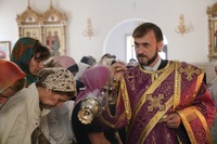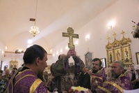 На утрене, после прочтения Евангелия, епископ Даниил в сопровождении духовенства вынес Крест на середину храма. Его Преосвященство совершил чин Воздвижения Честнаго и Животворящего Креста Господня, а затем возложил распятие на аналой для поклонения.