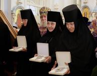 За Литургией также молились настоятельница Свято-Троицкого Никольского женского монастыря города Ташкента игуменья Екатерина с сестрами обители, и настоятельница Крестовоздвиженского женского монастыря игуменья Филарета.