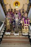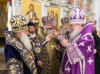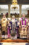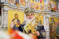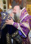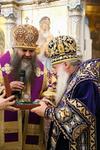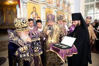 После Причастия был совершен благодарственный молебен ко Господу в честь юбиляра, а затем преосвященные архипастыри поздравили митрополита Викентия с 65-летием со дня рождения.