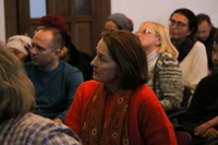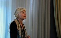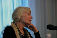 Затем слово взяла поэтесса Олеся Николаева. Поделившись историей своей творческой деятельности, она прочитала несколько стихотворений и коротких рассказов.