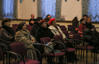 Перед началом выступления протодиакон Николай поприветствовал собравшихся в зале и коротко рассказал о своей встрече с епископом Бишкекским и Кыргызстанским Даниилом, которая прошла накануне в приемной епархиального управления.
