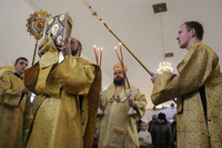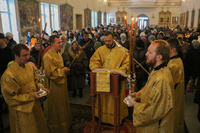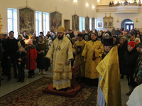 Его Преосвященству сослужили: протоиерей Валентин Никонов и иерей Георгий Дворовой. После завершения литургии по благословению Патриарха Московского и всея Руси Кирилла была отслужена лития по погибшим в автокатастрофах по всему миру. По завершении богослужения владыка Даниил обратился к прихожанам с архипастырским словом: