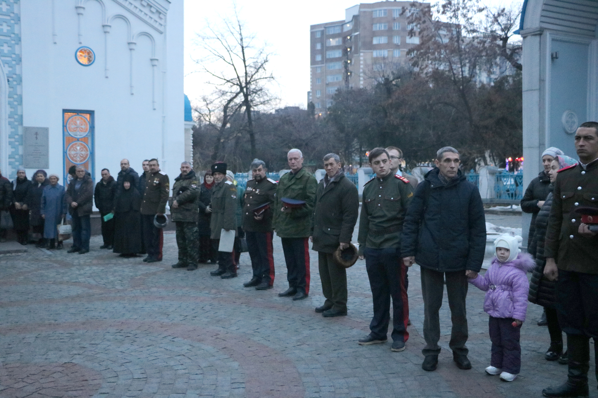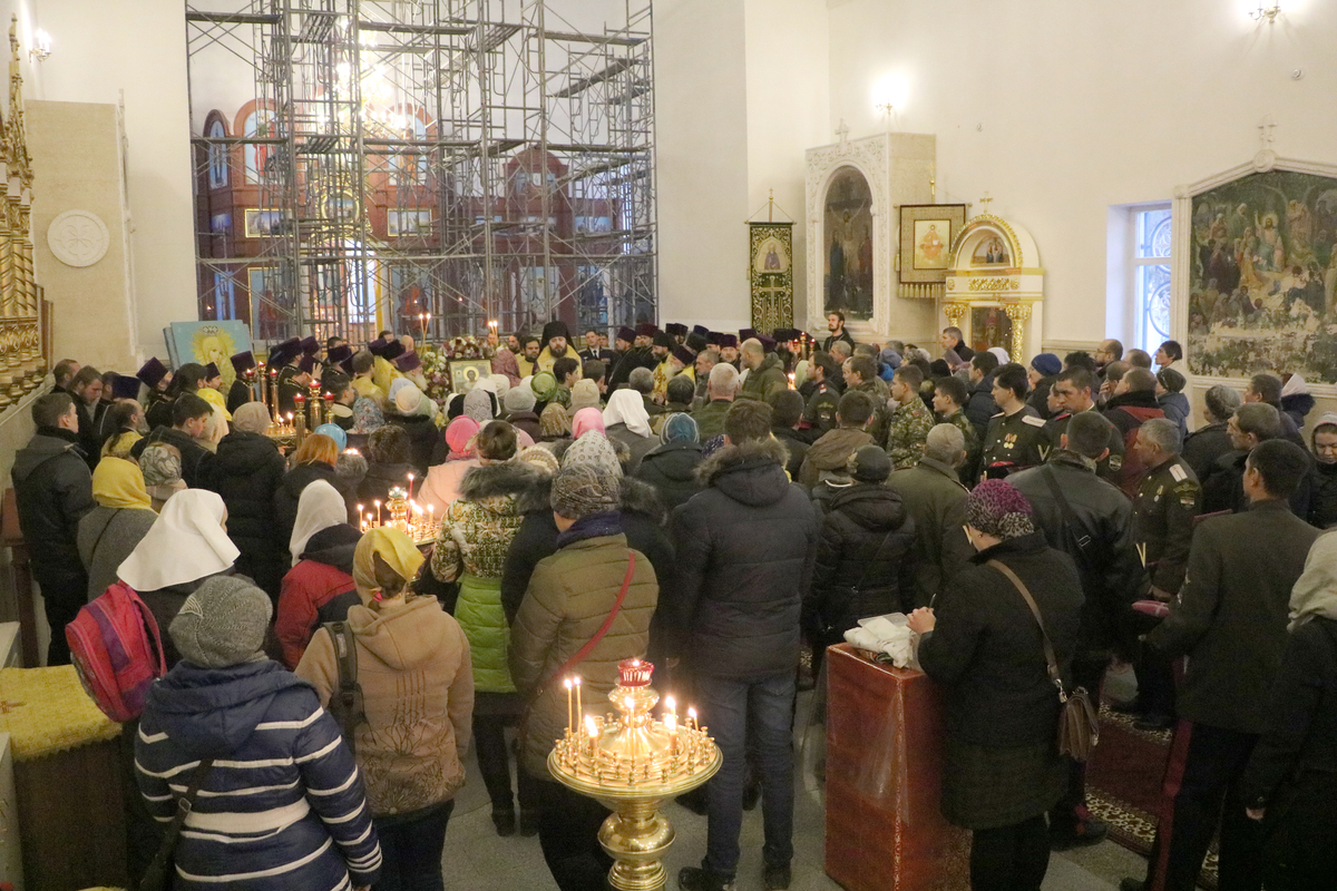 Сегодня в храме присутствуют братья казаки и военные Российской авиабазы, которые привезли нам эту великую святыню. Я вас благодарю и молю, чтобы Александр Невский хранил вас, являл вам добрый пример жизни христианской, православной.