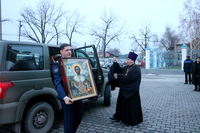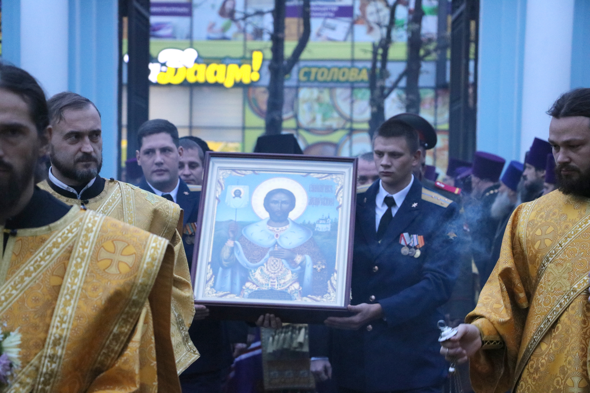 Образ благоверного князя был торжественно встречен правящим архиереем епархии епископом Даниилом, духовенством епархии и прихожанами Свято-Воскресенского кафедрального собора.