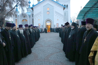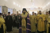 По прибытии мощей владыка Даниил отслужил молебен и обратился к собравшимся с архипастырским словом.