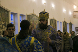 По завершении вечерней службы Его Преосвященство обратился к собравшимся с архипастырским словом, в котором поздравил всех с наступающим праздником Введения во храм Пресвятой Богородицы.