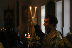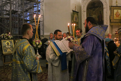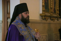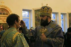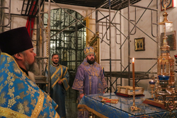 Его Преосвященству сослужили: протоиерей Валентин Никонов, протоиерей Андрей Кунавин, иерей Сергий Чудайкин, иерей Георгий Дворовой, иерей Илия Меляков, иерей Андрей Андреев.