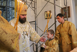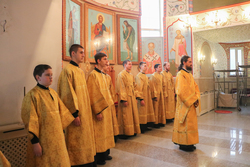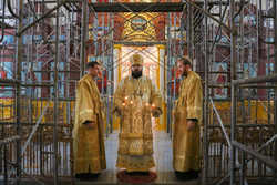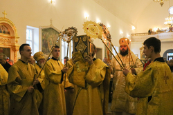 Его Преосвященству сослужили: протоиерей Валентин Никонов, иерей Георгий Дворовой, иерей Василий Кусаинов.