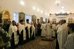 Его Преосвященству сослужили: протоиерей Валентин Никонов, архимандрит Петр (Путиев), протоиерей Андрей Кунавин, иерей Сергий Чудайкин, иерей Георгий Дворовой, иерей Андрей Андреев, иерей Владимир Кусаинов.