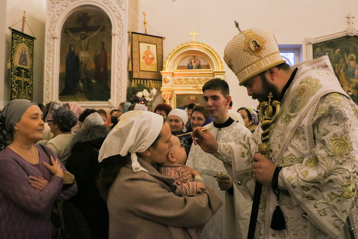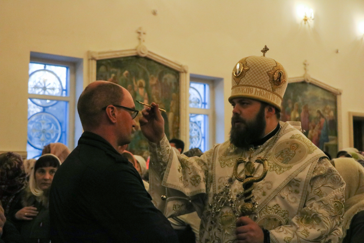 За богослужением епископ Даниил помазывал прихожан освященным елеем.