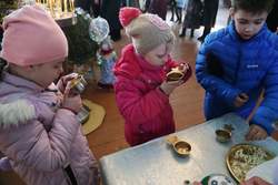 В храме Архистратига Божия Михаила г.Ош встретили светлый праздник Рождества Христова. После Божественной Литургии по доброй традиции дети - учащиеся ПЦПШ «Светоч» поздравили прихожан и исполнили Рождественские колядки. А во дворе храма всех ожидало угощение – традиционный Ошский плов!