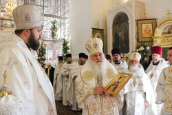 По заамвонной молитве священством было пропето славление празднику Рождества Христова.