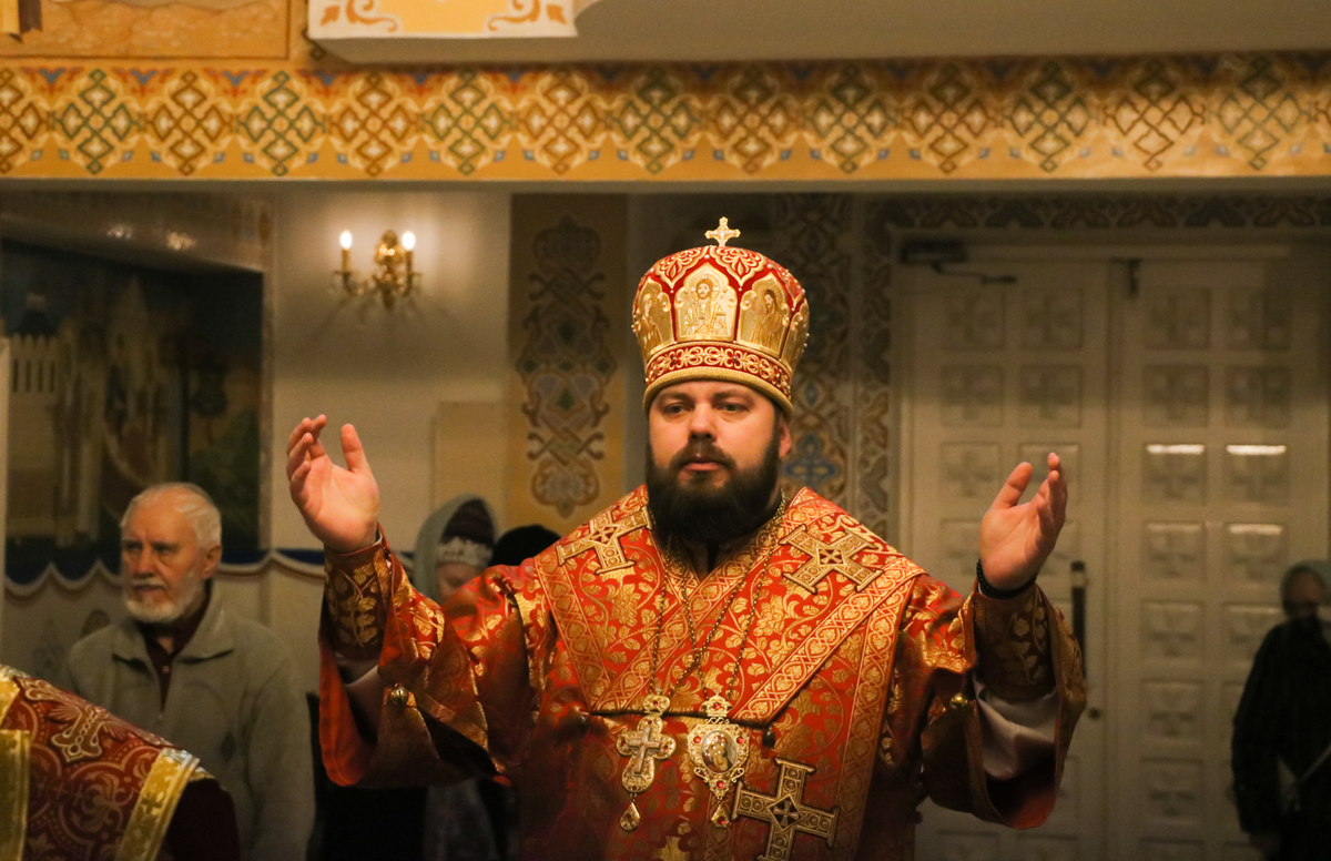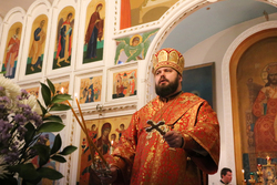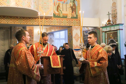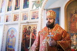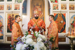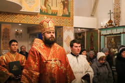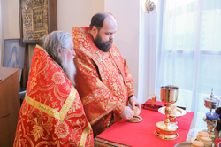 Его Преосвященству сослужили: протоиерей Валентин Никонов, архимандрит Петр (Путиев), иерей Георгий Дворовой.