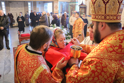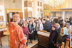 За литургией Его Преосвященство причастил прихожан храма и именинниц дня. Затем владыка обратился к ним с архипастырским словом, в котором рассказал о жизни и мученической кончине святой Татианы. Епископ Даниил поздравил именинниц с днём небесной покровительницы, с принятием Христовых Таин, пожелал всем здравия, крепости, душевного спасения, благодатного усвоения Божественной природы Святых Христовых Таин, помощи Божией и Ангела-хранителя.