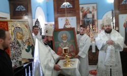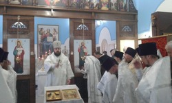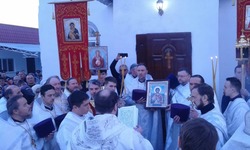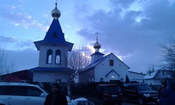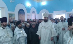 Родился еще один храм в нашей епархии. Это радостное событие не могло не заинтересовать прихожан православных храмов г. Бишкек.Родился еще один храм в нашей епархии. Это радостное событие не могло не заинтересовать прихожан православных храмов г. Бишкек. Ранним утром , еще было темно, со двора Свято Воскресенского собора выехали две маршрутки в направлении с. Сосновка. Приехали на место, когда только начало становиться светлее. Людей прибыло на празднике такое количество, что почти половина из них не помещались в храме, и стояли на улице.