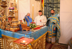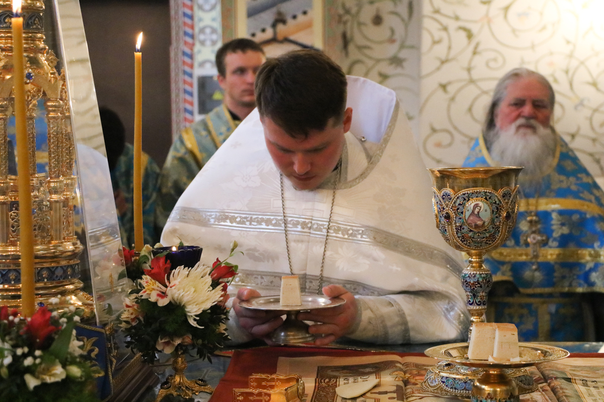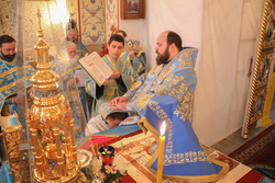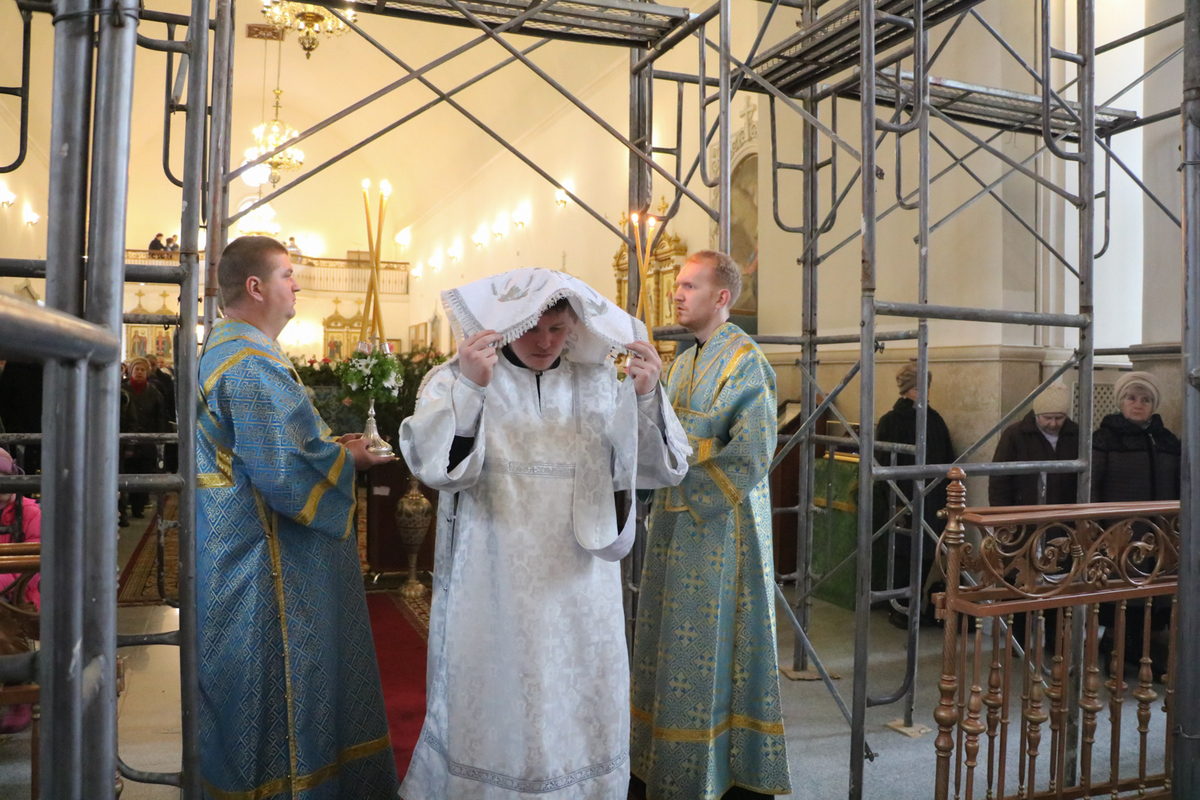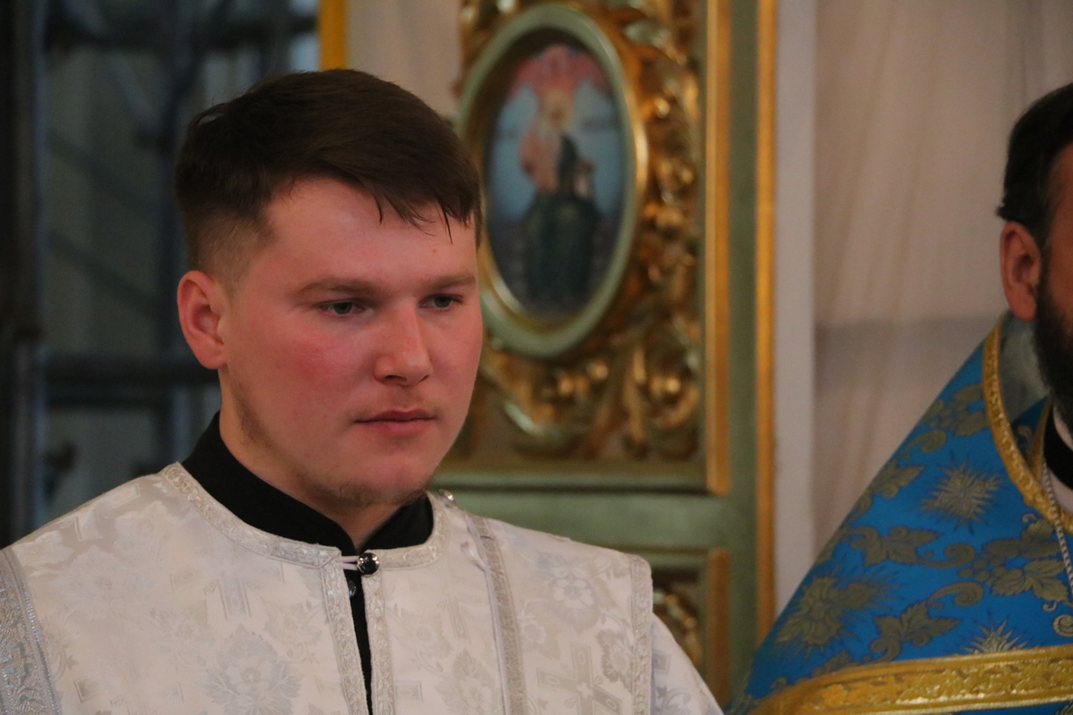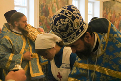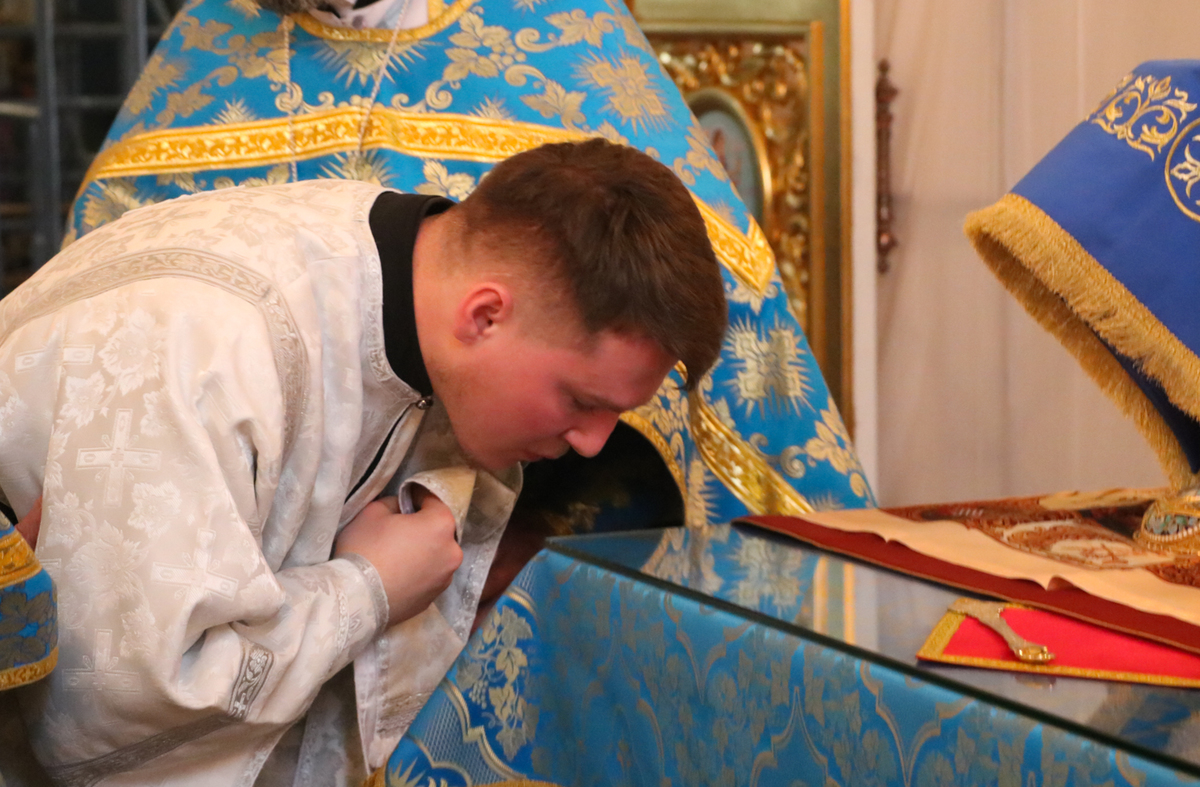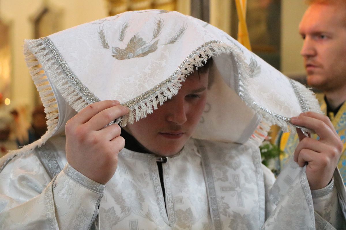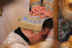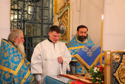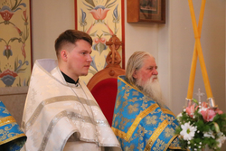 Затем, во время Великого входа владыка совершил иерейскую хиротонию. Отец Владимир Ступников был рукоположен во священника.
