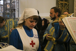 В день празднования Сретения Господня, за богослужением произошло сразу два знаменательных события. Доброволец социального отдела епархии Марина Старикова получила звание сестры милосердия и право ношения сестринской формы. Его Преосвященство посвятил сестру милосердия на служение ближним.