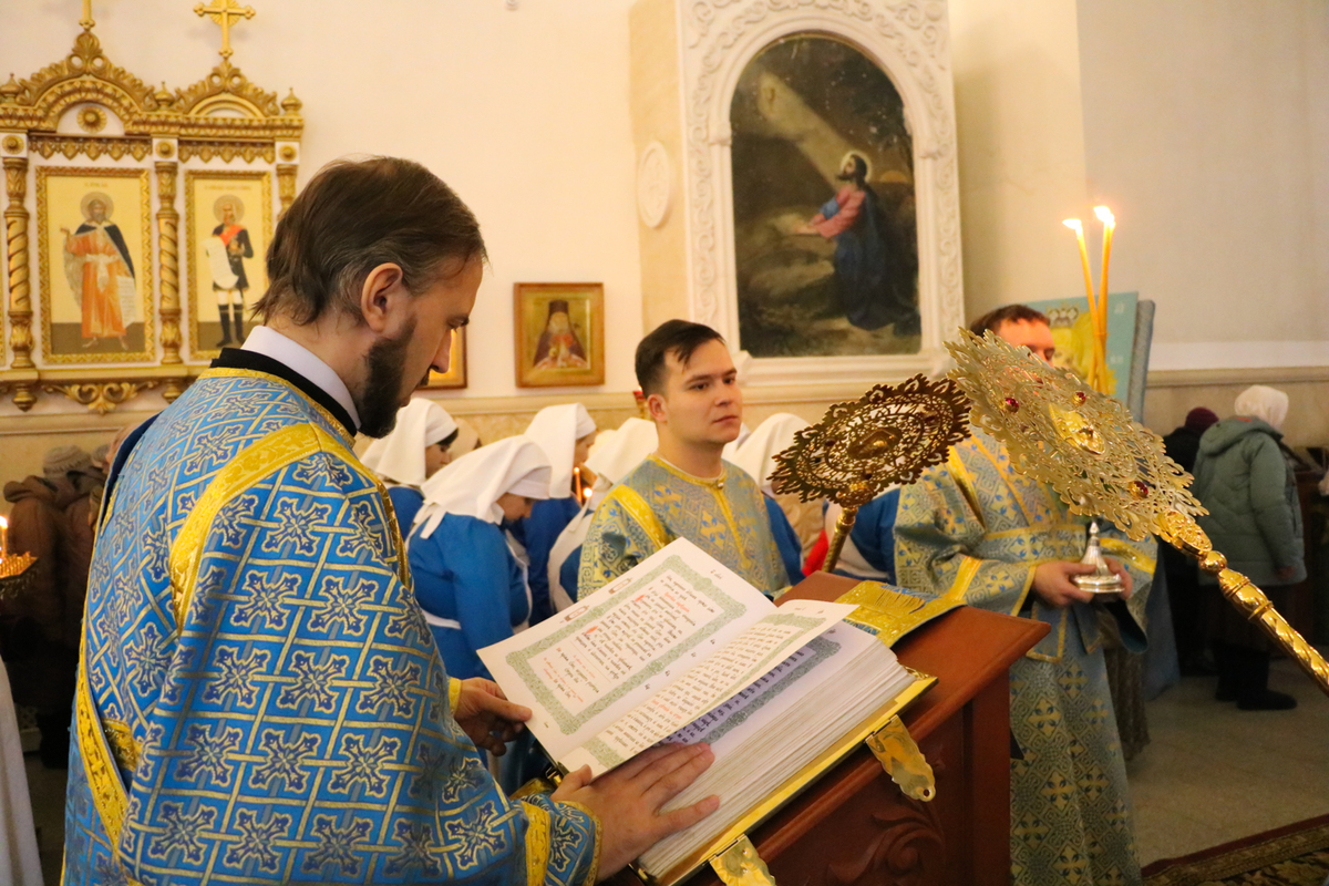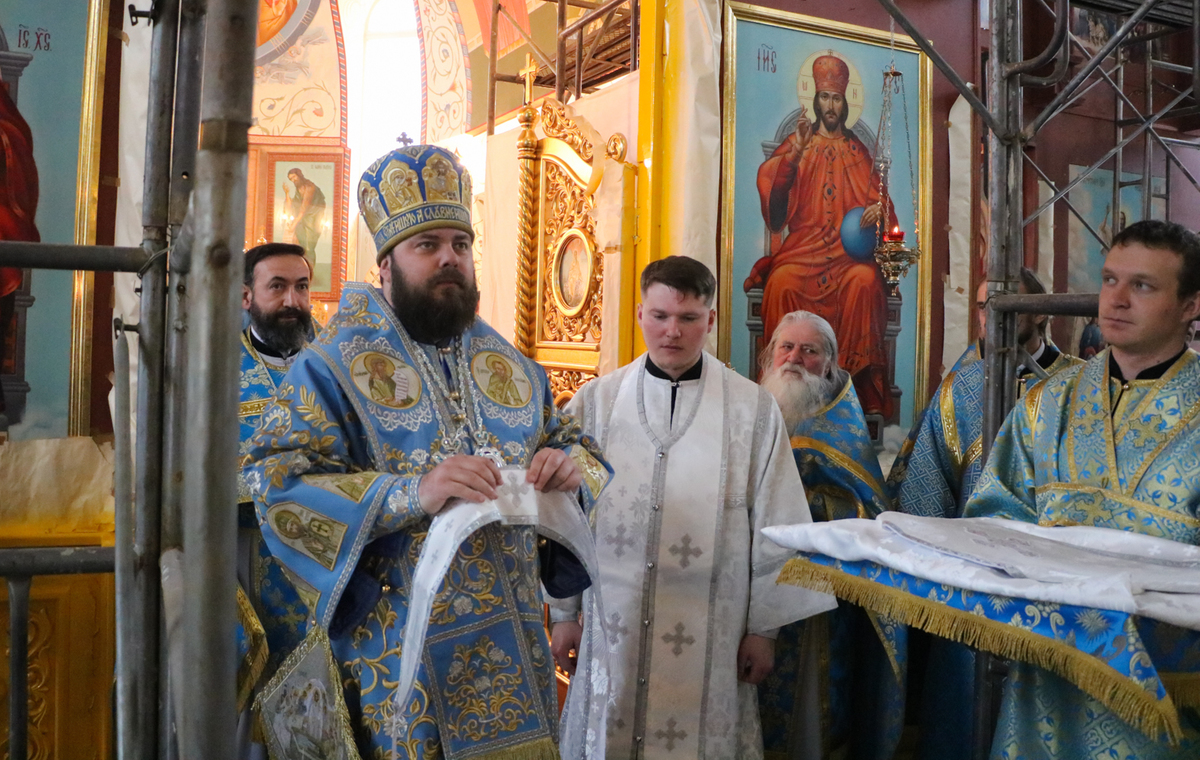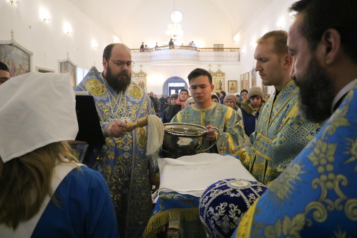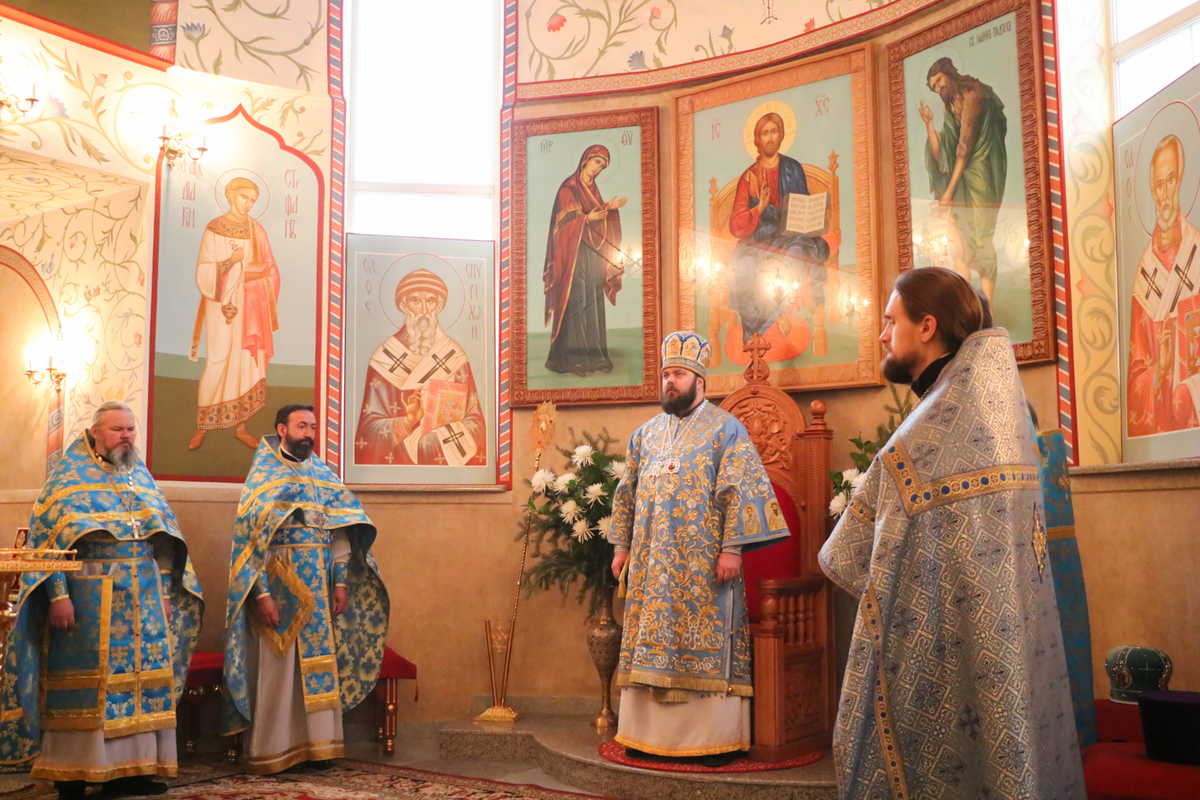Его Преосвященству сослужили: протоиерей Валентин Никонов, архимандрит Петр (Путиёв), протоиерей Андрей Кунавин, иерей Георгий Дворовой, иерей Илия Меляков.