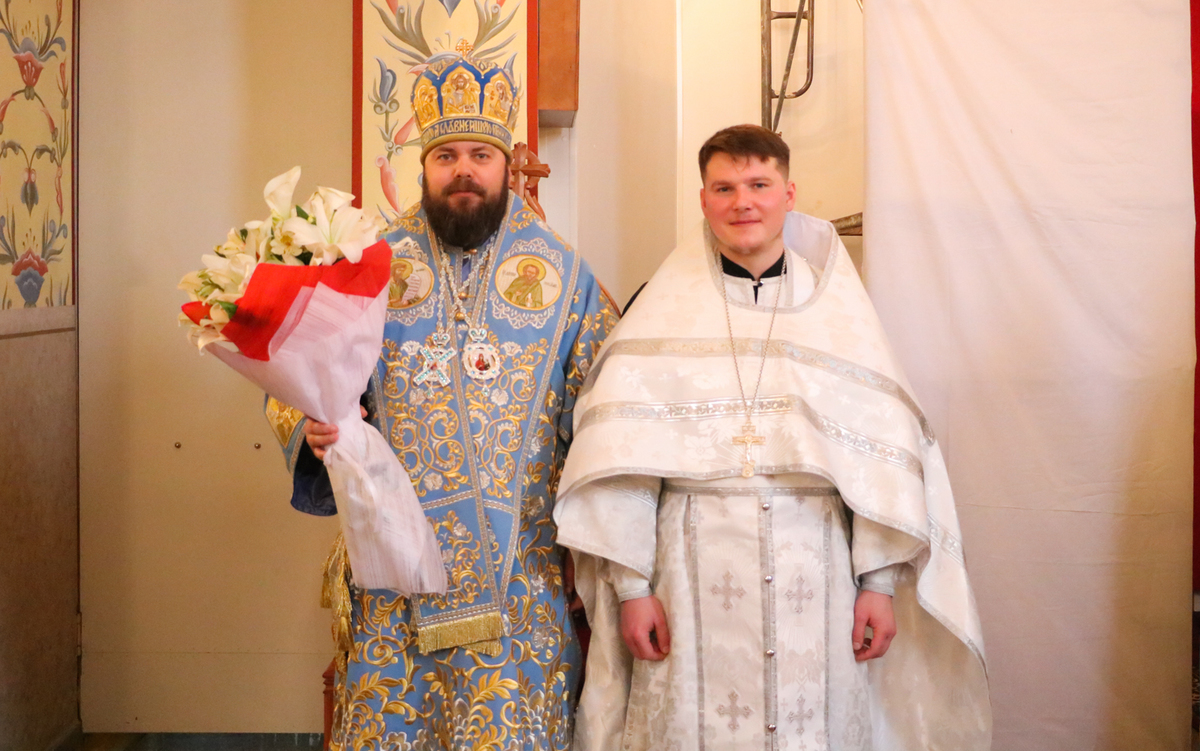 Далее Его Преосвященство поздравил отца Владимира Ступникова с рукоположением во иерея и преподал ему архипастырское наставление: «Отец Владимир, будь добрым пастырем – щедрым, добрым, любящим свою паству всем своим сердцем и Господь тебе дарует великую благодать, которая будет пребывать с тобой, не смотря ни на что. Дай Бог тебе, до скончания твоих лет быть тем пастырем, который будет приводить людей к Богу».