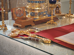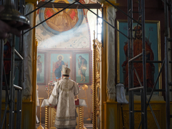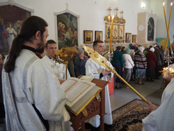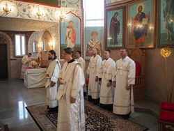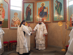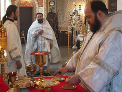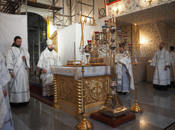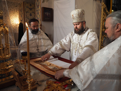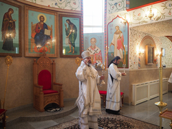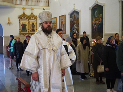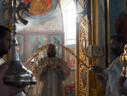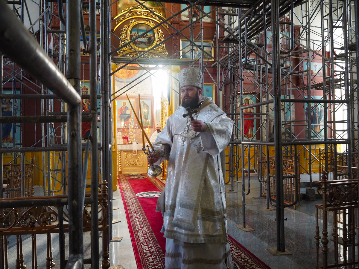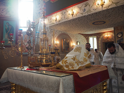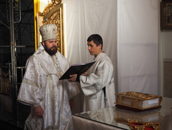 Его Преосвященству сослужили: архимандрит Пётр (Путиёв), иерей Георгий Дворовой, иерей Владимир Кусаинов.